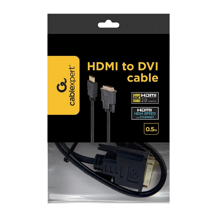 Cablu Video Cablexpert CC-HDMI-DVI-0.5M, HDMI (M) - DVI-I (M), 0,5m, Negru