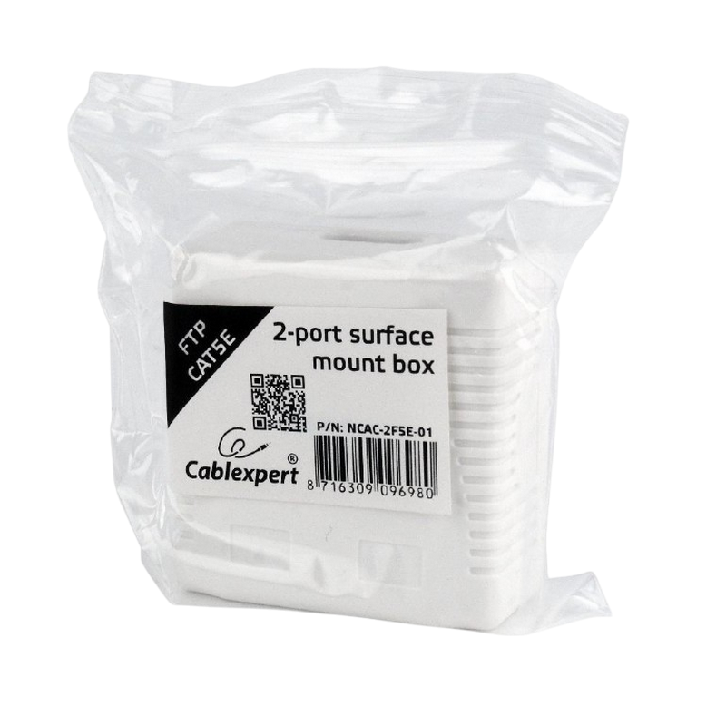 Priză pentru montare pe perete Cablexpert NCAC-2F5E-01, Alb
