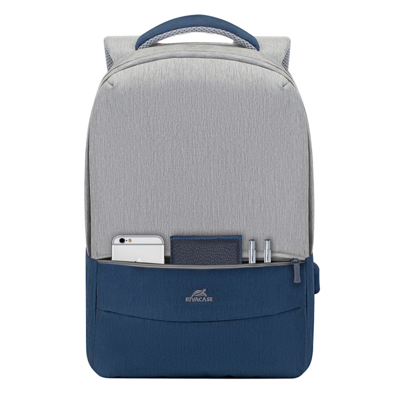 Rucsac pentru Laptop RivaCase Prater, 15.6", Poliester, Gri/Albastru