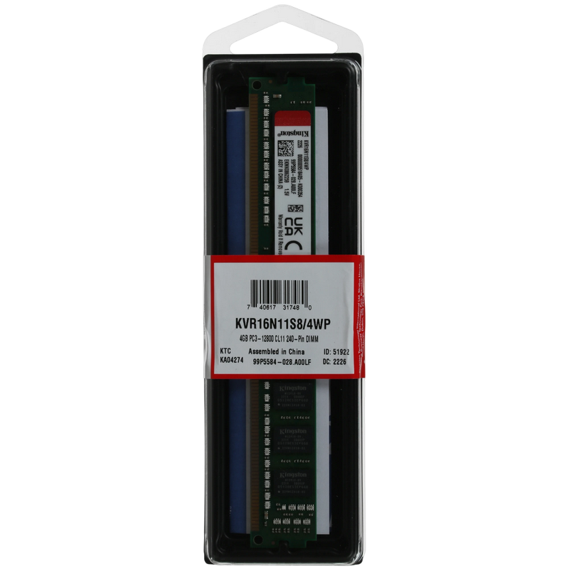 Memorie RAM Kingston ValueRAM, DDR3 SDRAM, 1600 MHz, 4 GB, KVR16N11S8/4WP