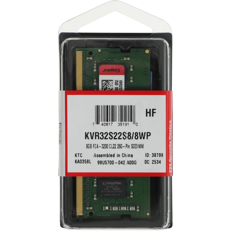 Memorie RAM Kingston ValueRAM, DDR4 SDRAM, 3200 MHz, 8GB, KVR32S22S8/8WP