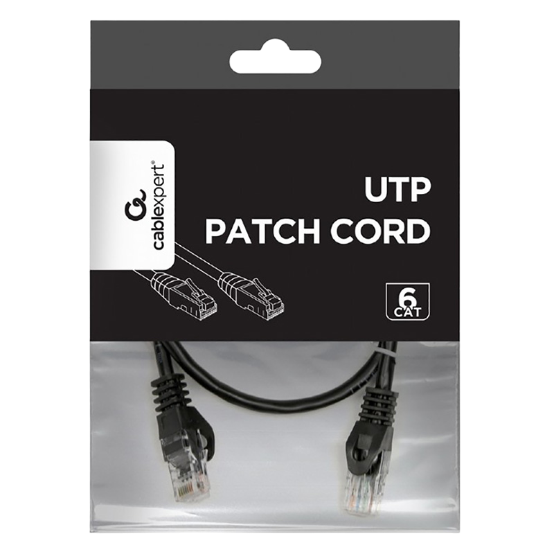 Patch cord Cablexpert PP6U-0.5M/BK, Cat6 UTP, 0,5m, Negru