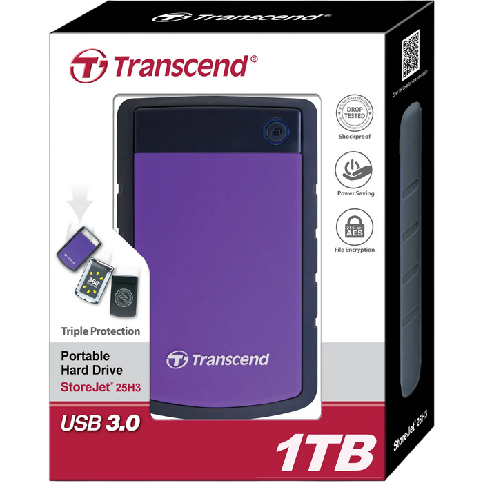 HDD portabil extern Transcend StoreJet 25H3P, 1 TB, Gri/Violet (TS1TSJ25H3P)
