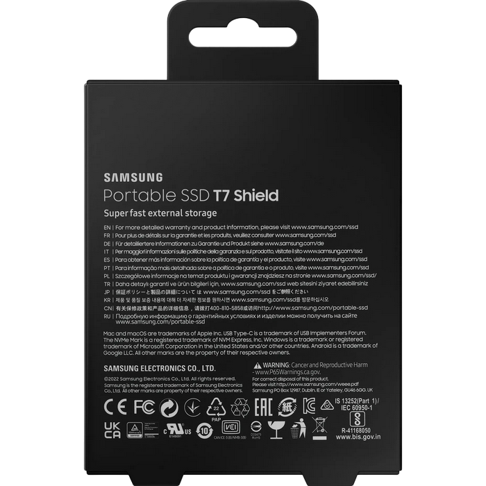 SSD portabil extern Samsung Portable SSD T7 Shield, 2 TB, Negru (MU-PE2T0S/WW)