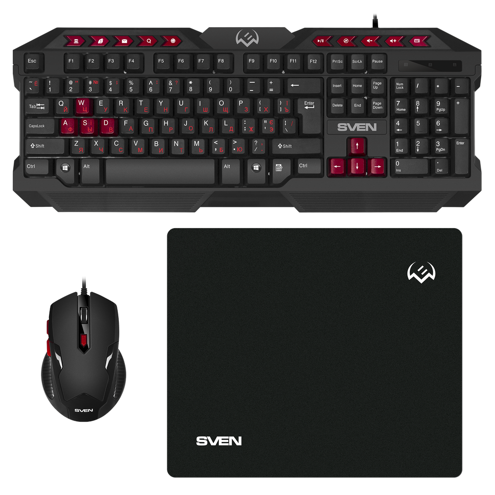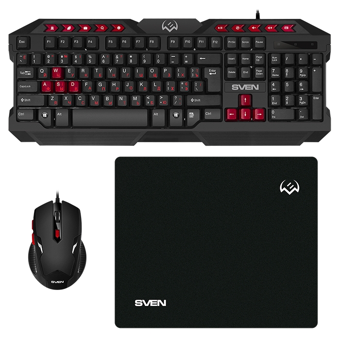 Set Tastatură + Mouse + Mouse Pad SVEN GS-9200, Cu fir, Negru/Rosu