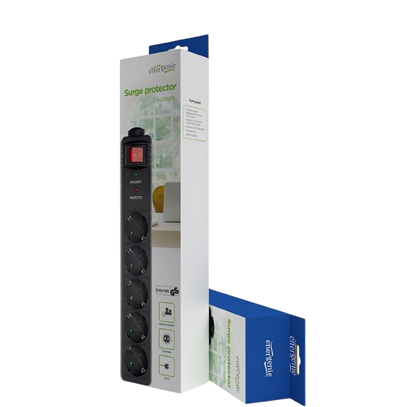 Prelungitor electric Gembird SPG5-C-5, 5 Prize, 1.5m, Negru