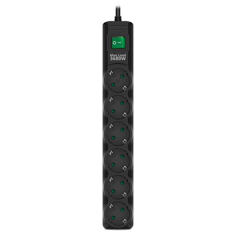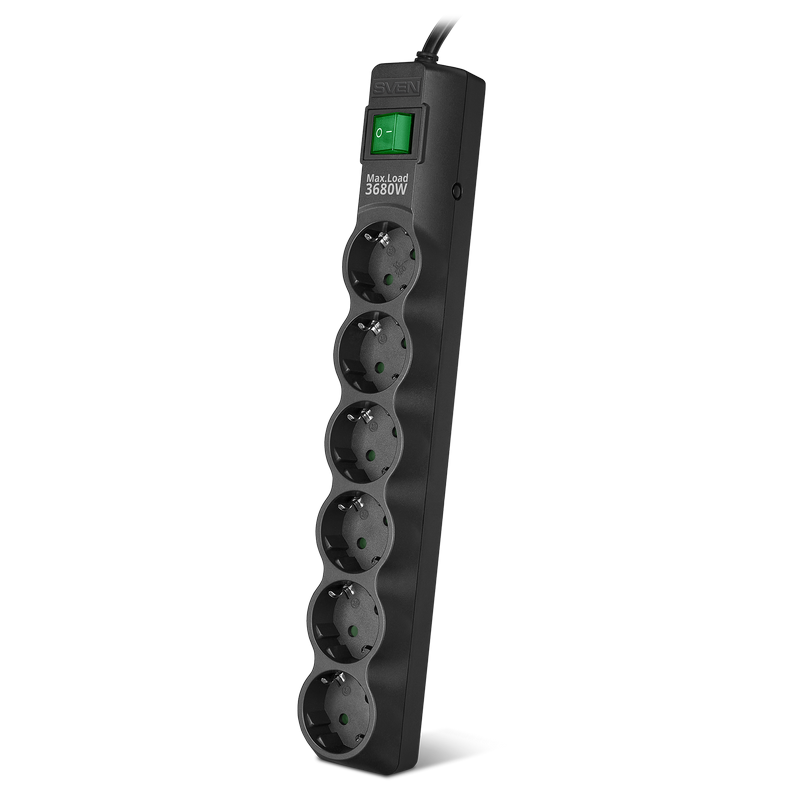 Prelungitor electric SVEN SF-06E-16, 6 Prize, 3m, Negru
