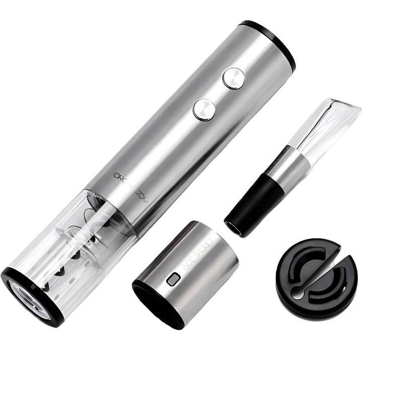 Materialul suprafeței de lucru: Plastic. Metal Numărul de piese în set: 4 Sursa de alimentare: Baterii 4x AA Set: Tibuson, dop de vid, cutit, aerator