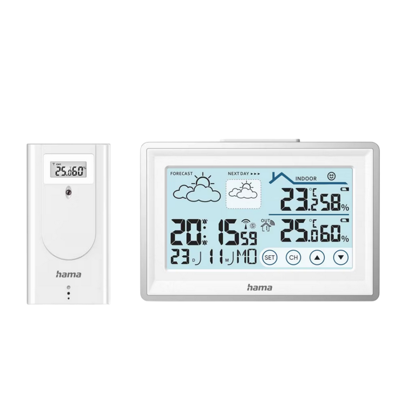 Tip: Termometru, Higrometru Rază de acțiune: 50 m Afișează prognoza meteo Afișează umiditatea interioară și exterioară Afișează temperatura interioară și exterioară