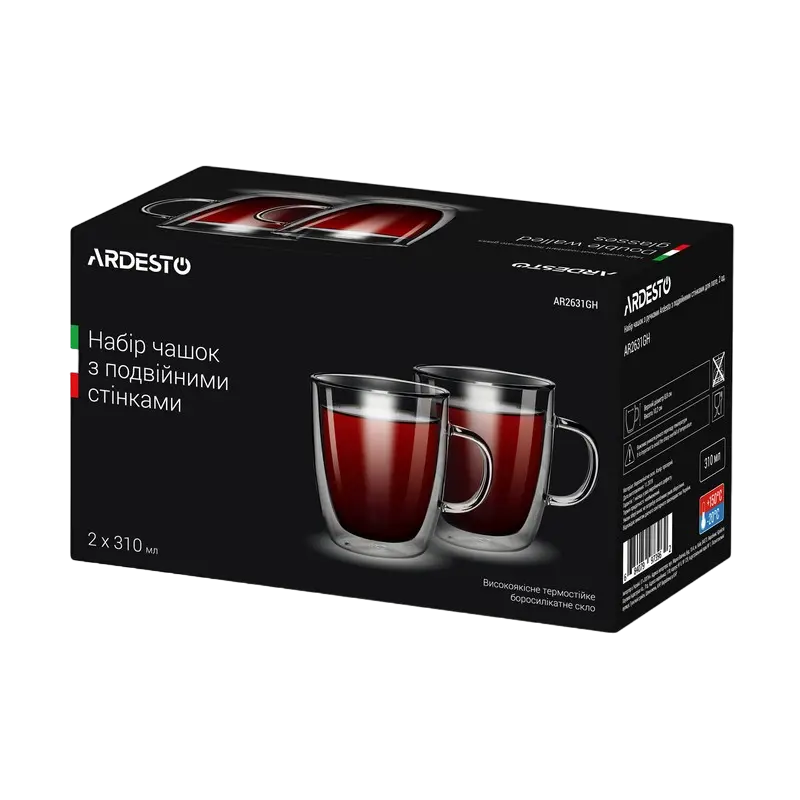 Set de pahare Ardesto 310 ml 2 buc, Transparent