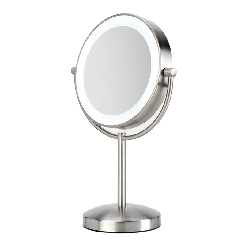 Plasare: De masă Forma: Rotund Numar oglinzi: 2 Lungime / Diametru : 21,6 cm Materialul carcasei: Metal Sursă de alimentare: Rețea electrică Mărire maxima: De 10 ori Iluminare: Da