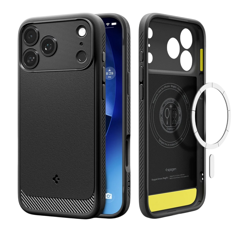 Husă Spigen Rugged Armor Mag pentru Apple iPhone 17 Pro, Negru Mat