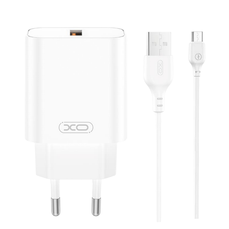 Încărcător XO CE33 + MicroUSB, 18W, Alb