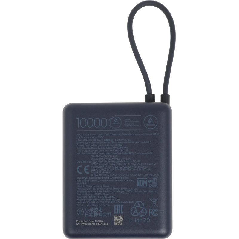 Capacitate: 10000mAh Numar de conectori: 2 Port de ieșire: USB-A/USB-C Cablu USB-C încorporat
