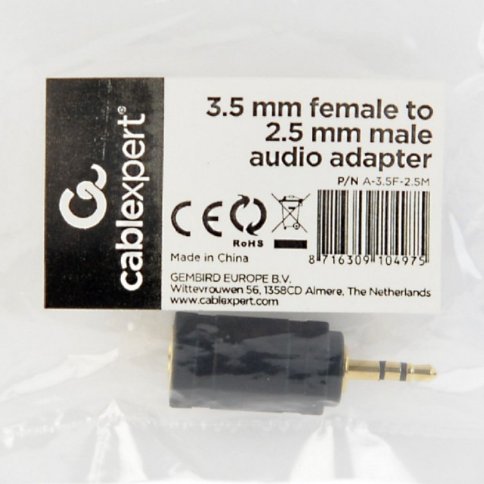 Audio Adaptor Cablexpert A-3.5F-2.5M, 3.5mm 3-pin (F) - 2.5mm 3-pin (M), Negru