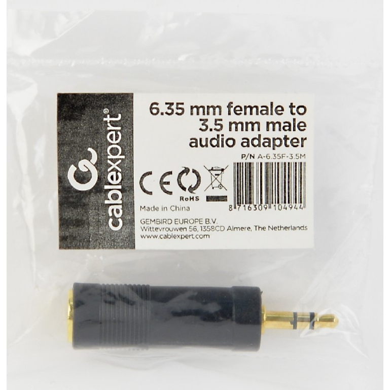 Audio Adaptor Cablexpert A-6.35F-3.5M, 6.35mm 3-pin (F) - 3.5mm 3-pin (M), Negru