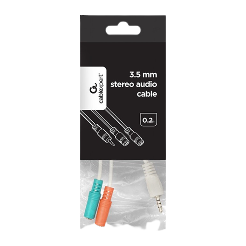 Audio Adaptor Cablexpert CCA-417W, 3.5mm 4-pin (M) - 2x 3.5mm 3-pin (F), 0,2m, Alb