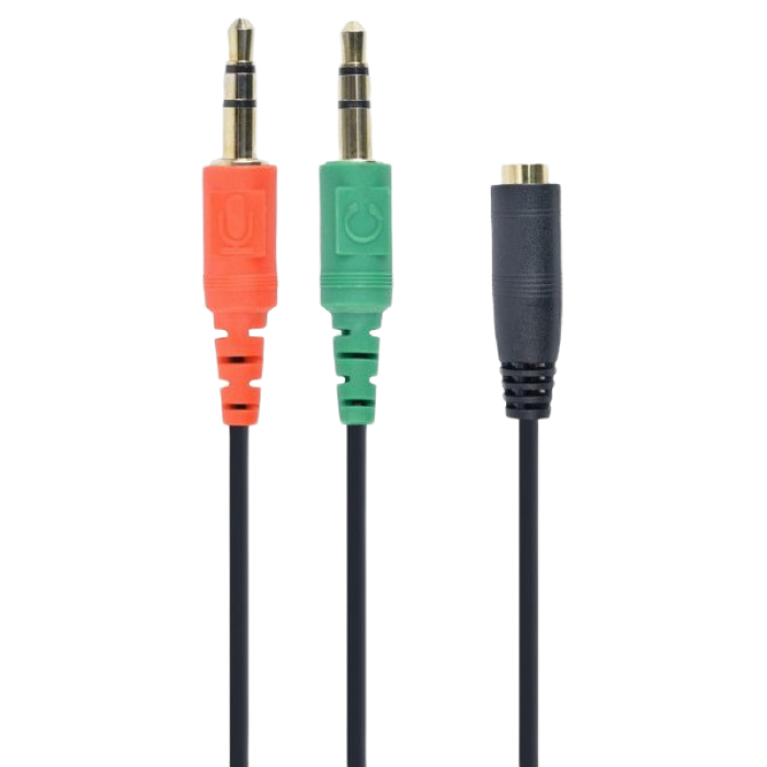 Audio Adaptor Cablexpert CCA-418, 3.5mm 4-pin (F) - 2x3.5mm 3-pin (M), 0,2m, Negru