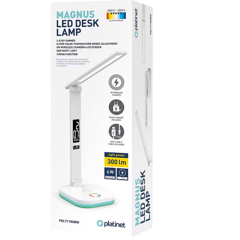 Lampa de birou Platinet PDL711RGB, Alb