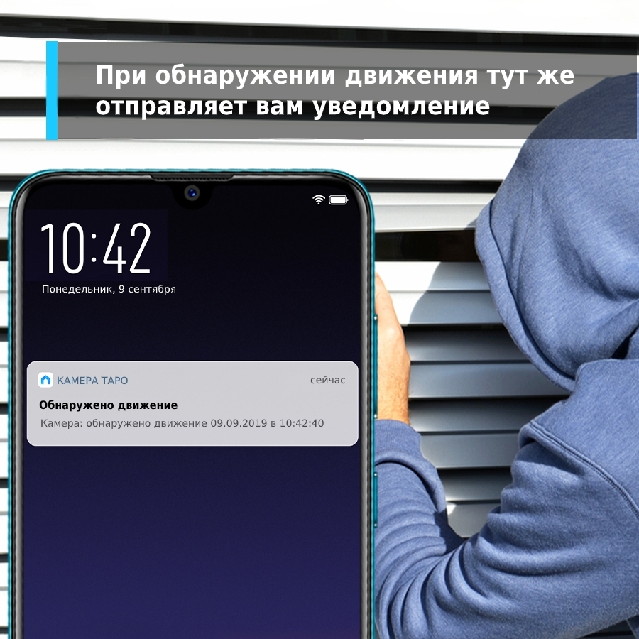 Detectarea mișcării, notificări push, alarmă sonoră și luminoasă