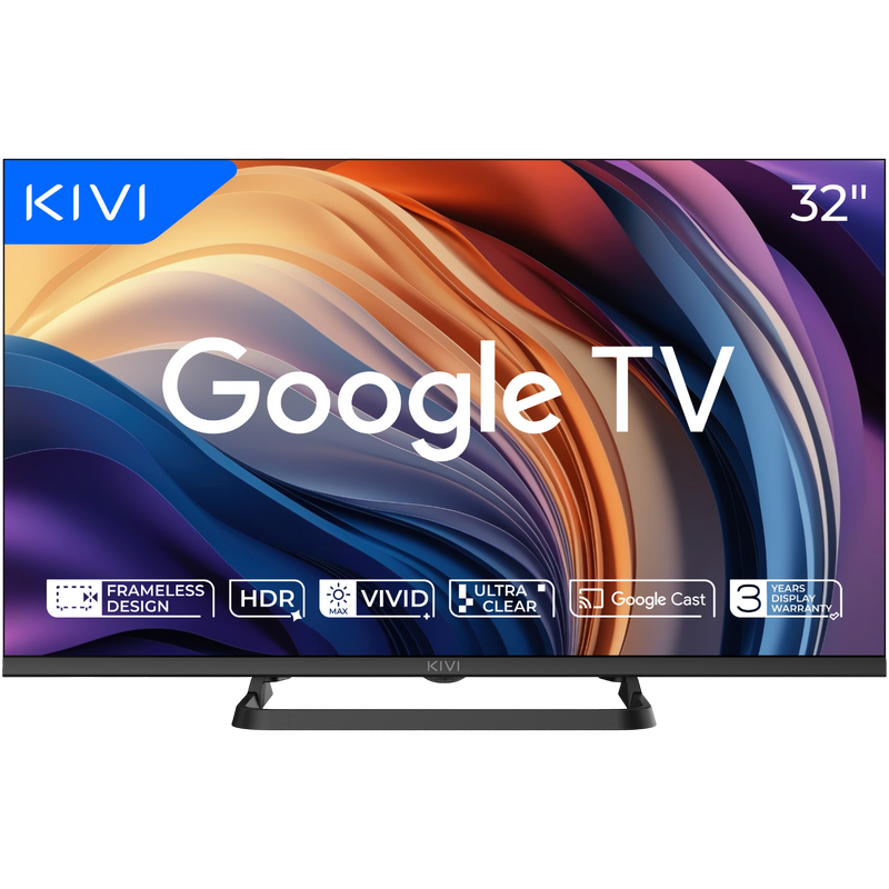 32" LED SMART TV KIVI 32H710QB +PULT!, 1366x768 HD, Google TV, Negru